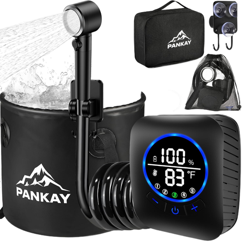 מקלחת ניידת לקמפינג 6000 מאה משאבת מקלחת נטענת מחמם מים טבילה 6.6 דלי מתקפל גל, 4 ספריי